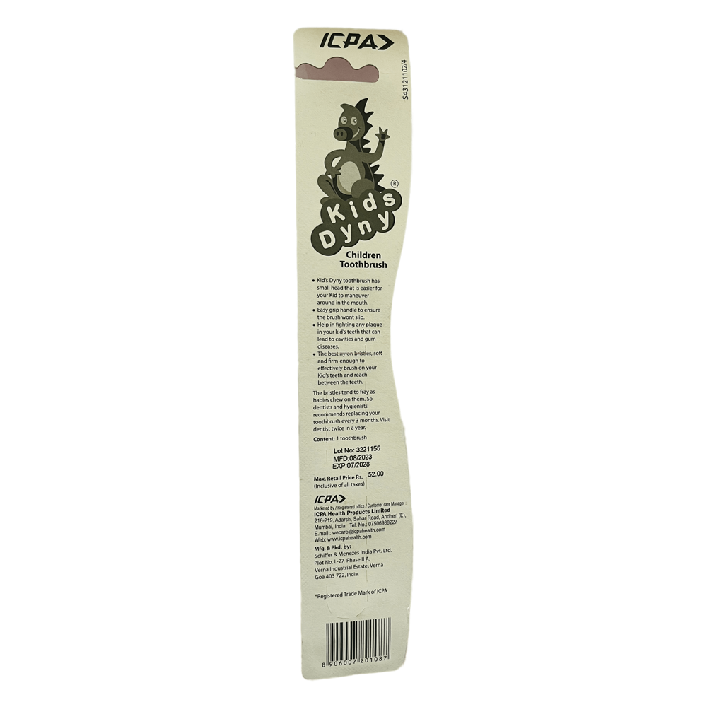 - Kids Dyny toothbrush has a small head that ensures easy maneuvering in your child’s mouth.